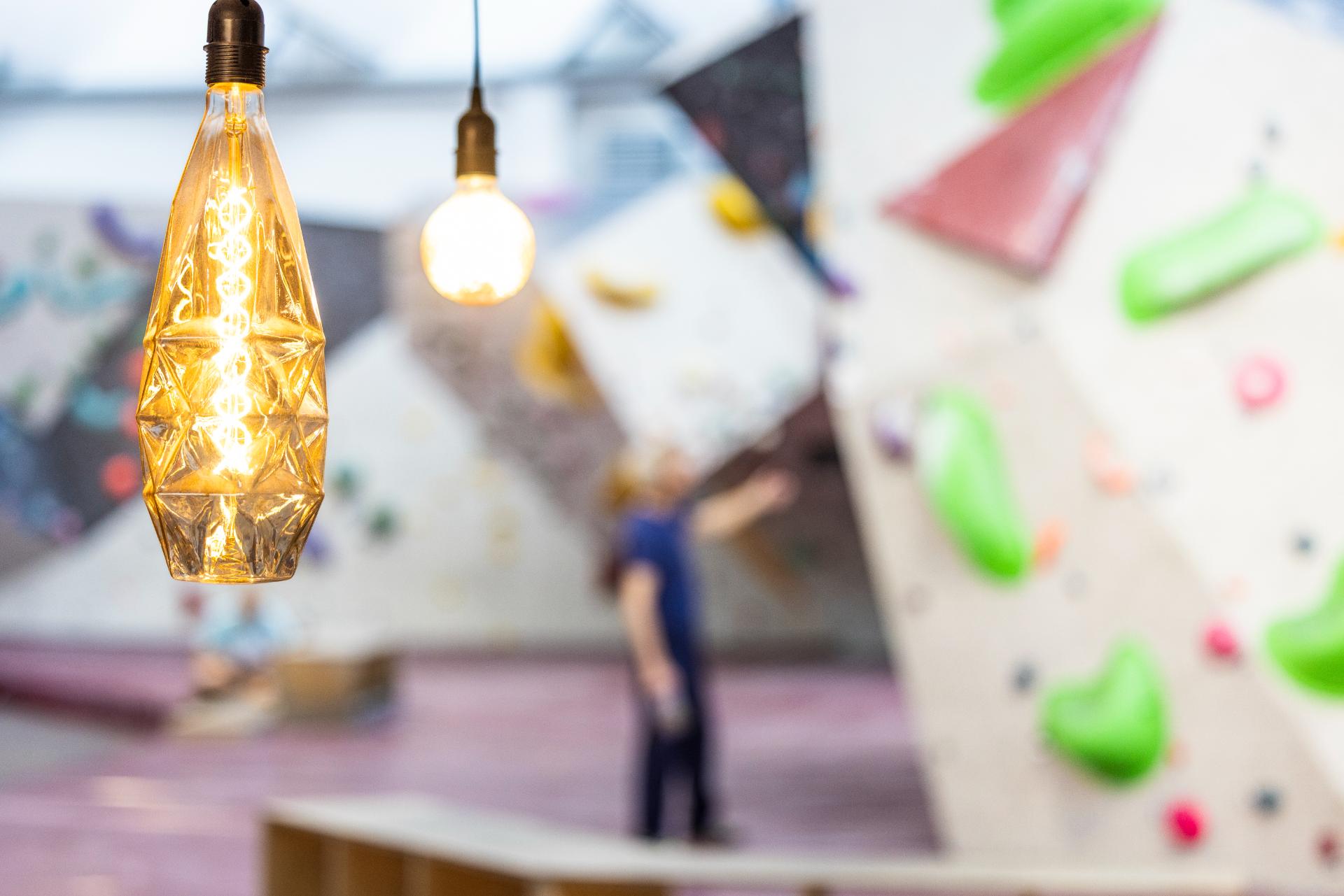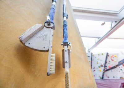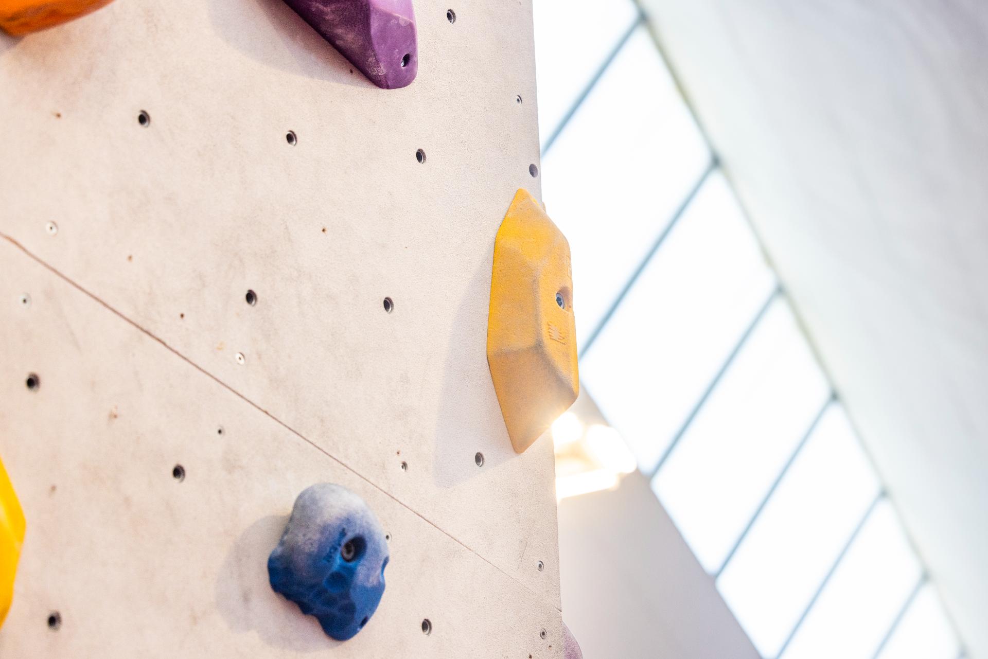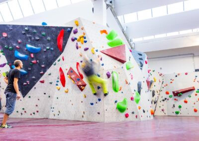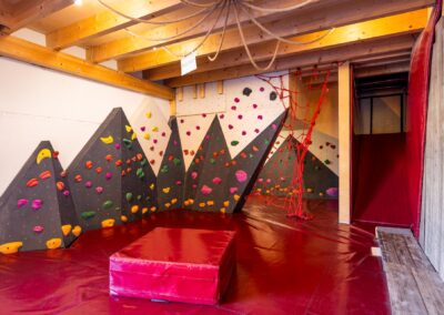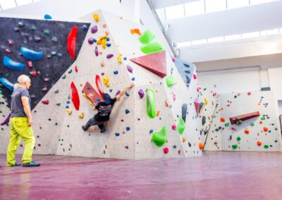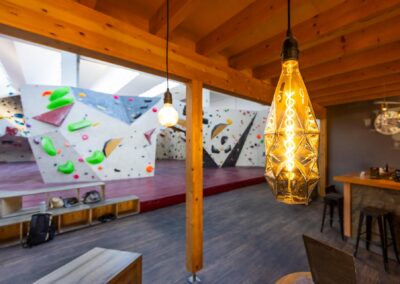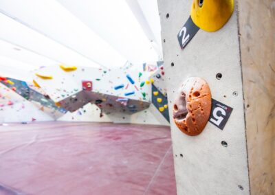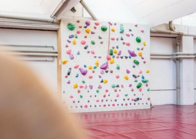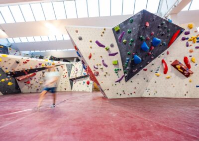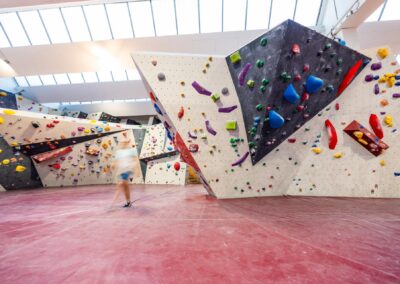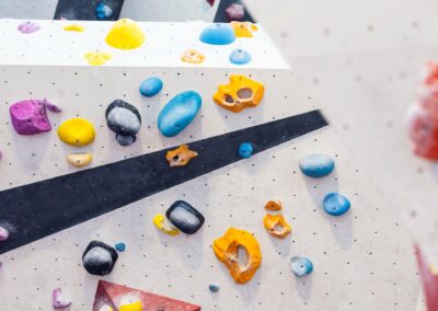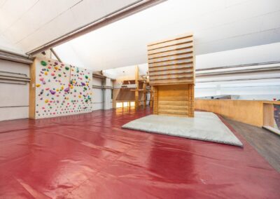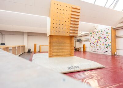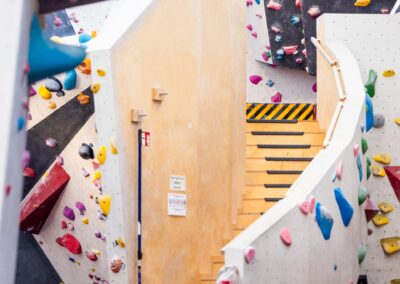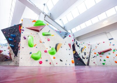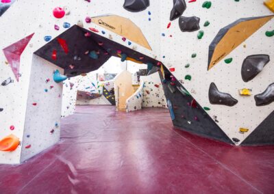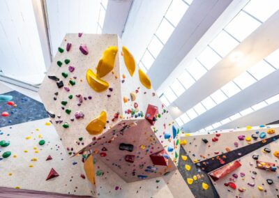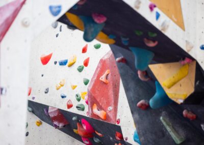 Bei uns findest du alles, was das Bouldern zum Erlebnis macht: Auf mehreren Ebenen erwarten dich abwechslungsreiche Wandhöhen zwischen 3,00 m und 4,50 m. Ob geneigte Platte, senkrechte Wand, sanfter Überhang oder steiles Gelände – bis hin zum beeindruckenden 8 Meter langen Dach des „Diamanten“ ist für jede*n etwas dabei.