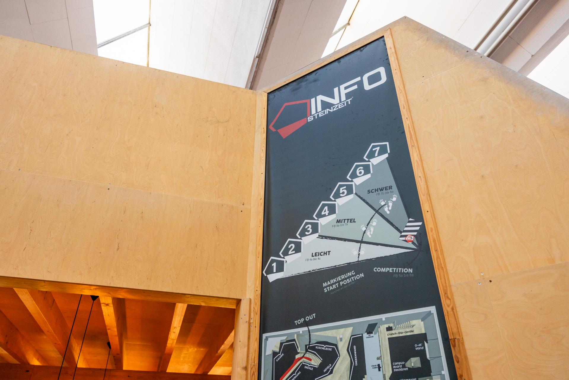 Unsere 30 Meter lange Wettkampfwand mit 4,50 Meter Höhe ist das Herzstück der Halle – von beiden Ebenen aus bestens einsehbar. Hier kannst du dich messen, staunen oder einfach nur zuschauen und inspirieren lassen.